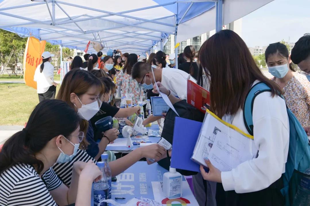 因为疫情,父母等送行人员不能入校,为了解决新生行李搬运问题,学校增派了大量的志愿者服务队来协助新生入校,统一从校门外开始为新生搬运行李,做好各类引导服务工作。