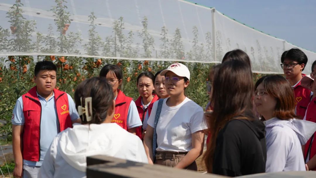 同学们观摩了社堤村苹果矮化密植高效示范园,其核心技术是苹果矮化密植栽培。这种技术通过科学的修剪和管理,使苹果树保持低矮的树形,不仅提高了苹果产量,也切实增加了农民收入。
