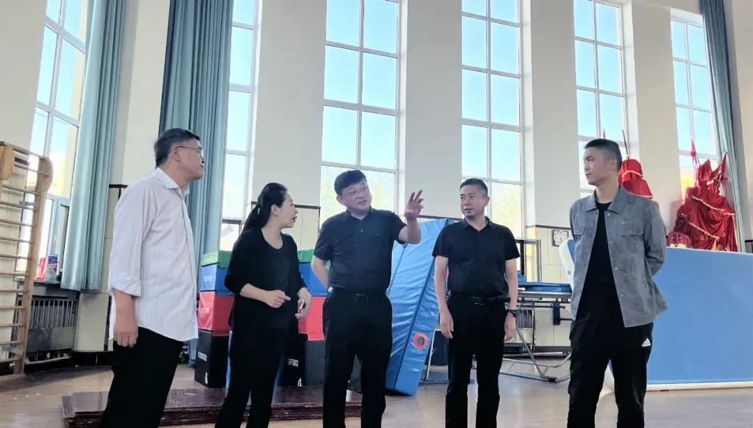 在校领导的陪同下,高宇宏一行先后考察了主校区、食堂、训练馆、荣誉室和二期扩建项目。