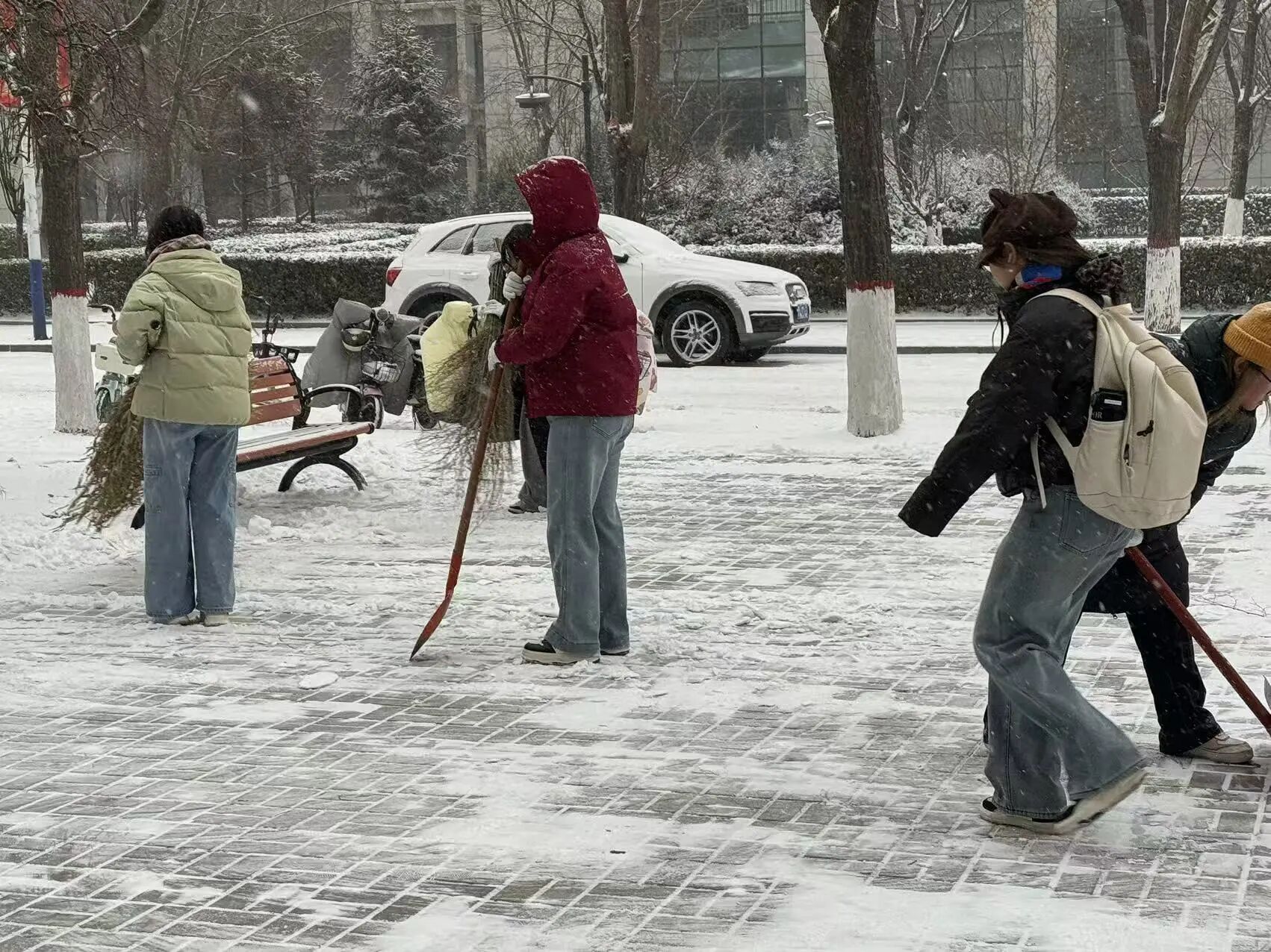 冬雪初降,为校园披上银装的同时,也给师生出行带来了安全隐患。为切实保障校园道路畅通、守护每一位师生的出行安全,12月12日,我院严格按照《关于开展校园清雪除冰行动的倡议书》精神,由党委组织部、后勤保障部联合统筹,组织各党总支、直属党支部开展校园集中清雪除冰行动,以“雪停即扫、即扫即净”的行动力,为校园撑起“安全伞。