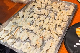 食堂里瞬间变身“饺子工坊”,同学们各显神通:有人专擀饺子皮,面皮在擀面杖下转着圈就成型;有人主攻包饺子,元宝饺、月牙饺摆了满满一盘,还有人包出各种奇形怪状的“创意饺”,逗得大家笑个不停。老师们也加入我们的队伍,手把手教我们捏饺子褶,边包边和我们唠学习、聊生活,课堂外的亲切瞬间拉近距离。