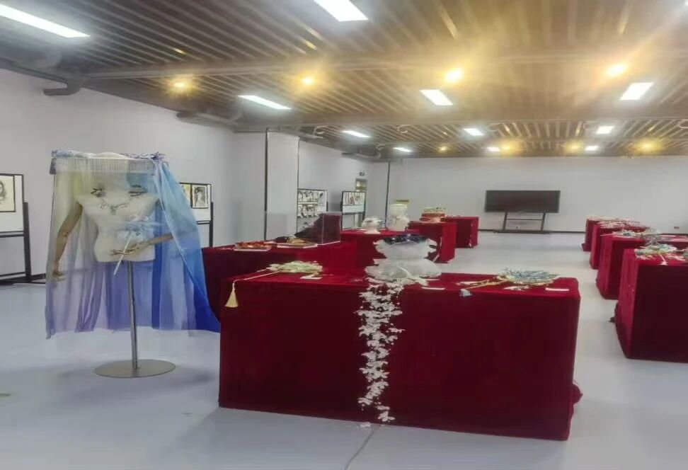 展览现场布置精致有序,各类手工作品色彩丰富、造型别致,充分展现了学生们扎实的动手能力和对传统与现代装饰艺术的理解。缠花作品细腻典雅,丝网花灵动逼真,和风布花轻盈飘逸,造花液制作的仿真花材质极具质感与创意。此外,大一新生的妆面效果图紧扣影视角色塑造,风格多样;服装效果图则融合戏剧性与时尚感,体现出良好的专业基础与审美素养。