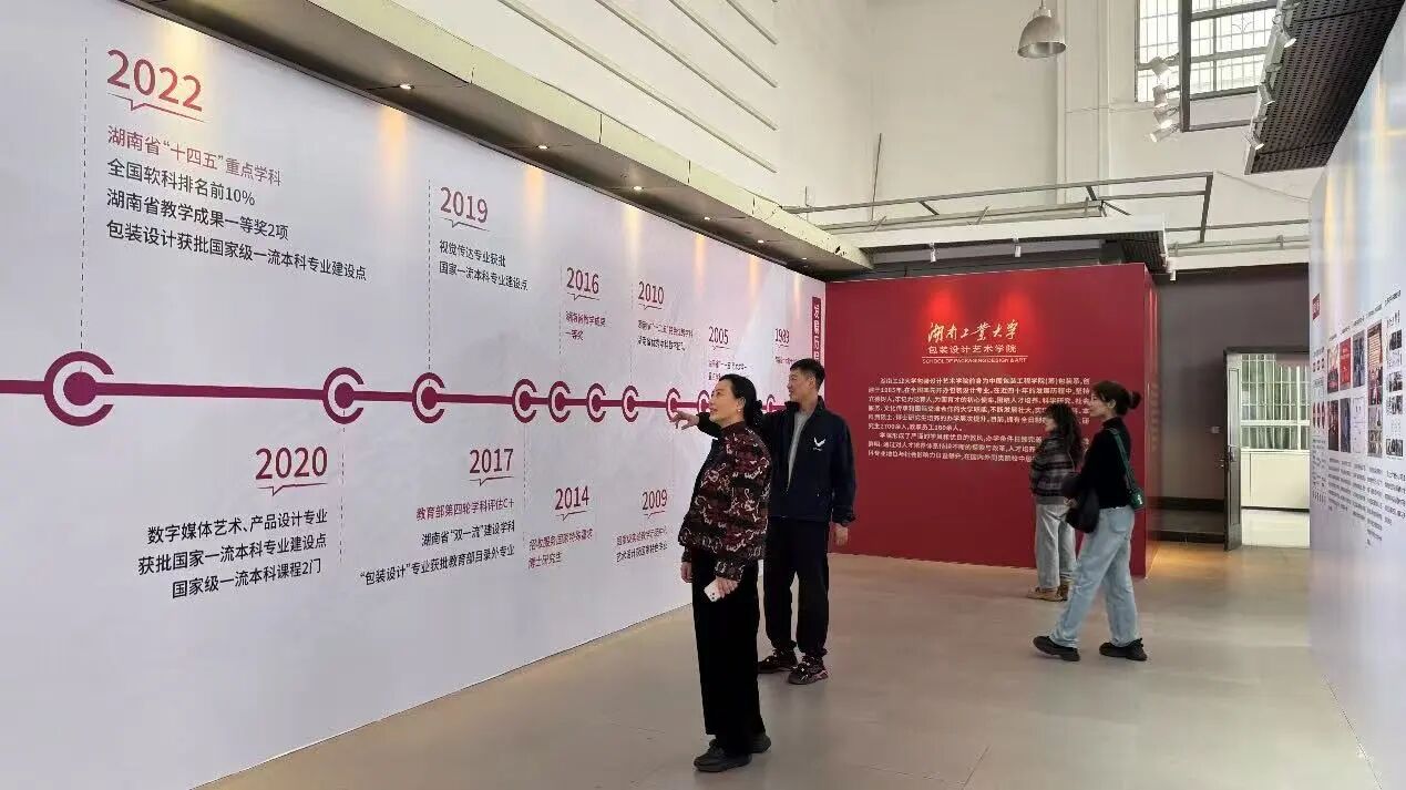 研学活动尾声,在湖南工业大学包装设计艺术学院副院长施爱芹教授的陪同下,三校教师代表共同参观了该学院办学40周年成果展。通过观展,大家全面了解了湖南工业大学包装设计艺术学院的发展历程、学科建设成效、人才培养质量及社会服务贡献,进一步拓宽了办学治院与专业建设的思路视野。