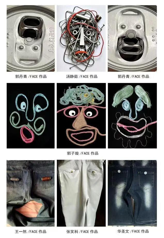 在综合材料的重构设计中,学生们以“形色的脸、有趣的物”为主题,利用日常或废弃材料的物理特性,能够按需挑选并通过多组系列作品来展示。从单件作品的精雕细琢到系列作品的全局把握,学生们平衡了主题表达的趣味性与作品的一致性,增强了审美判断力和对材料的驾驭能力。