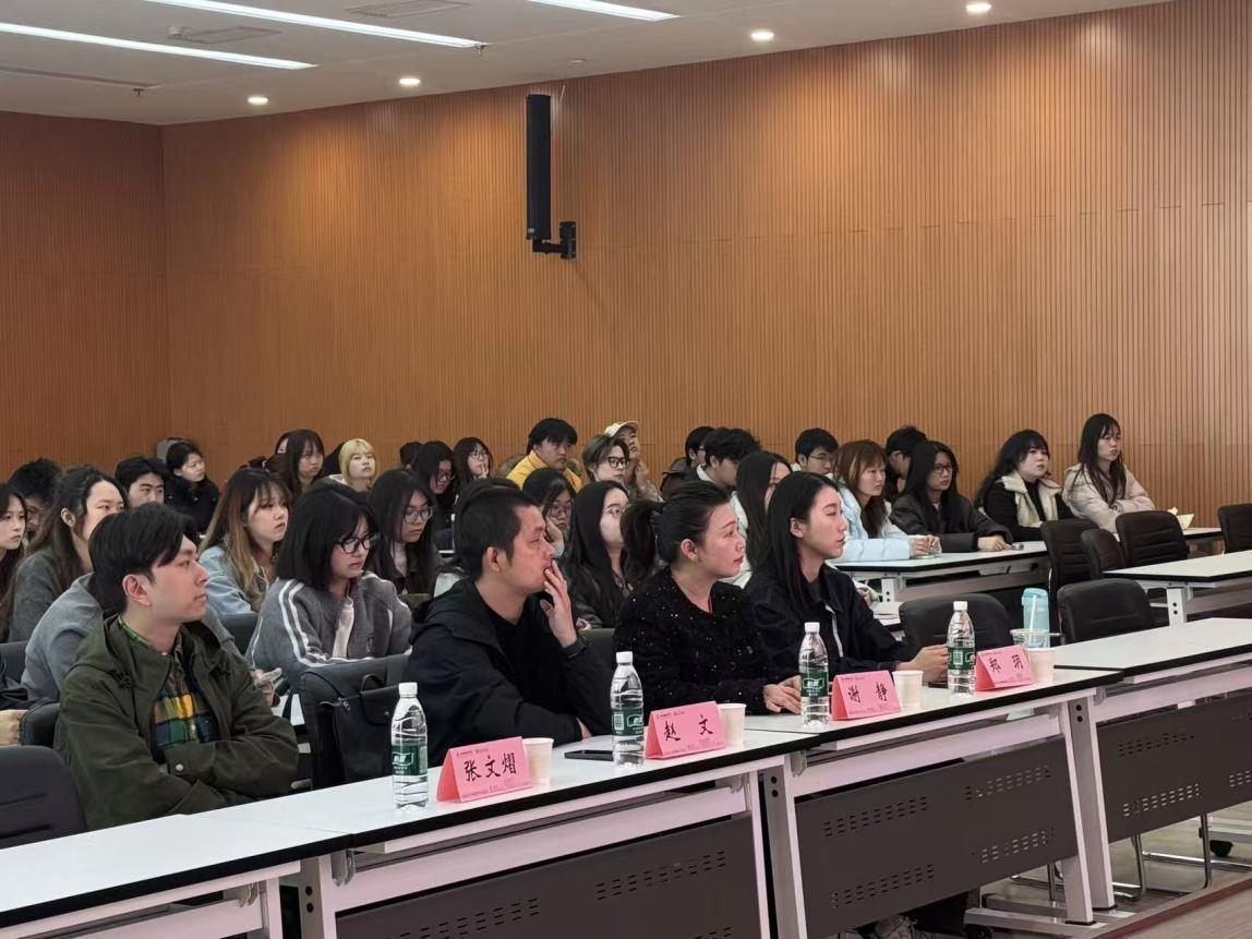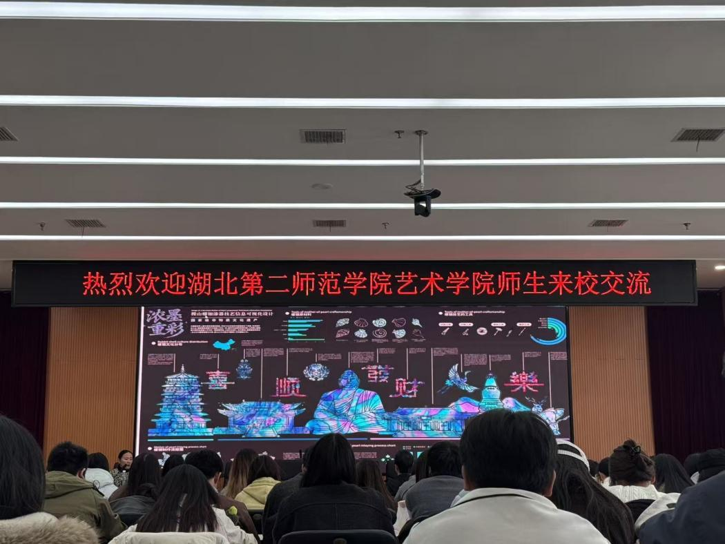 为深化设计学科校际交流,凝聚育人共识,推动教育高质量发展。近日,湖北第二师范学院艺术学院副院长赵文教授带队莅临我校开展交流研讨,同行成员包括视觉传达设计谢静副教授、张文熠讲师博士、郑玥讲师博士及 110 名视觉传达设计专业学生,艺术设计学院师生代表热情接待并举办了讲座活动。